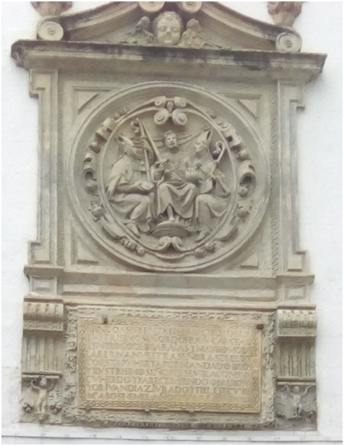 los patronos de Sevilla, en la parte central San Fernando conquistador de la